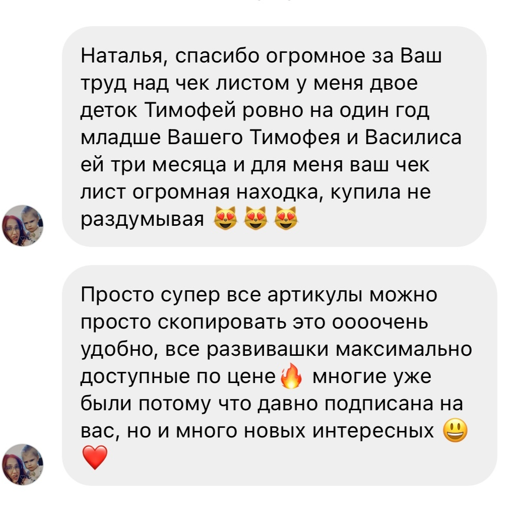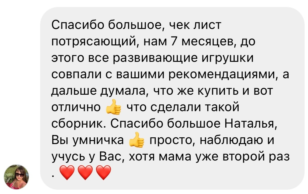 В чек-листе указаны артикулы на Wildberries на каждую развивающую игрушку